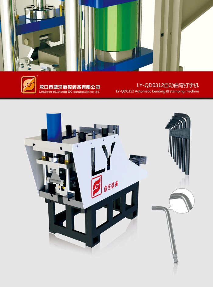 ★內(nèi)六角打字折彎機床改變了傳統(tǒng)的加工工序,針對于五金工具行業(yè),內(nèi)六角,花形六角板手,及套筒附件等需要既曲彎成型又要打字的產(chǎn)品,進行了多工序的整合,一次成料,打字曲彎成型同時進行完成;